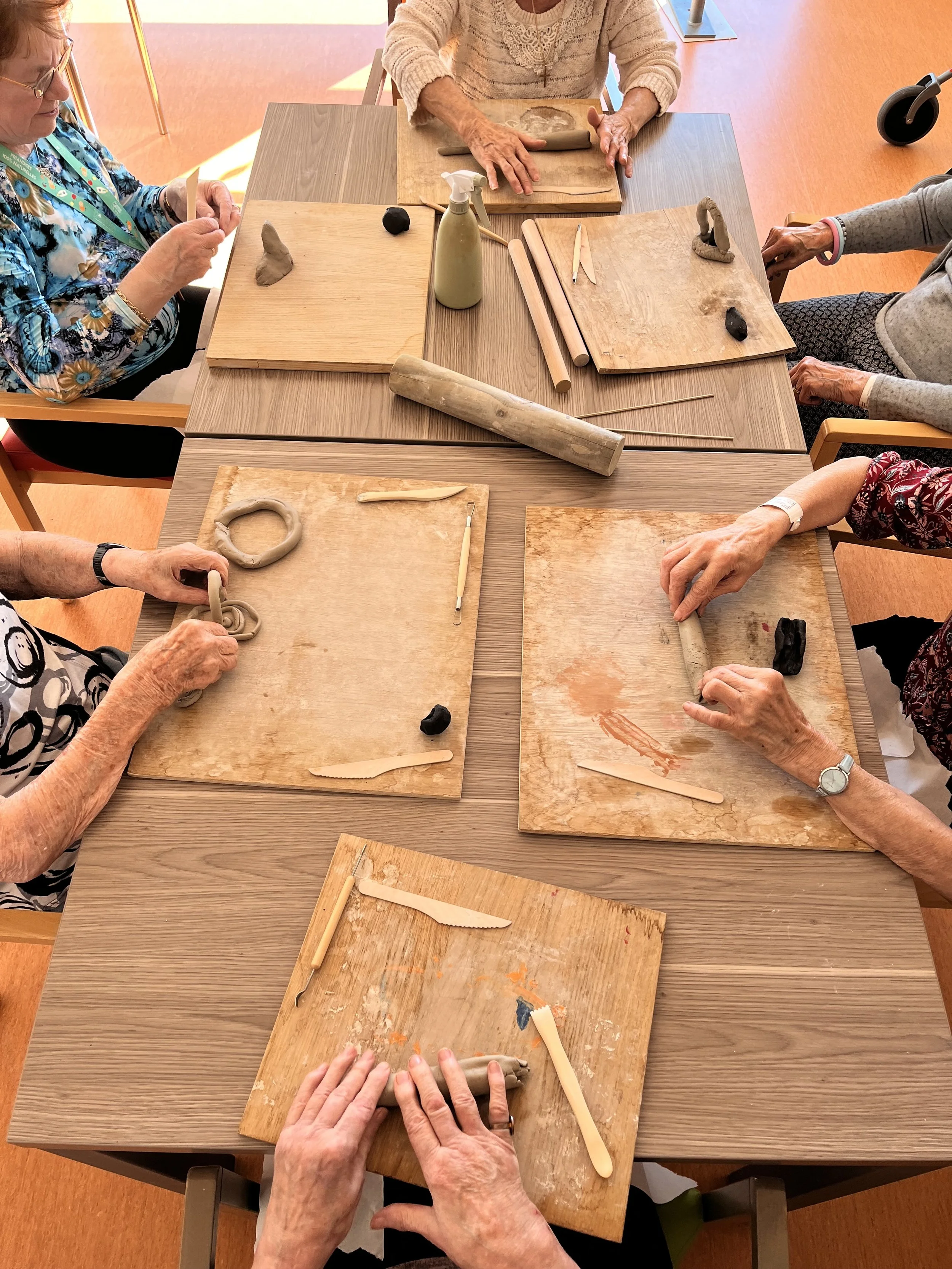 un temps de mise en route, basé sur l’ancrage, la stimulation cognitive, un temps central de mise en forme artistique, guidé par l’art-thérapeute, puis un temps d’échange et d’accueil des créations.